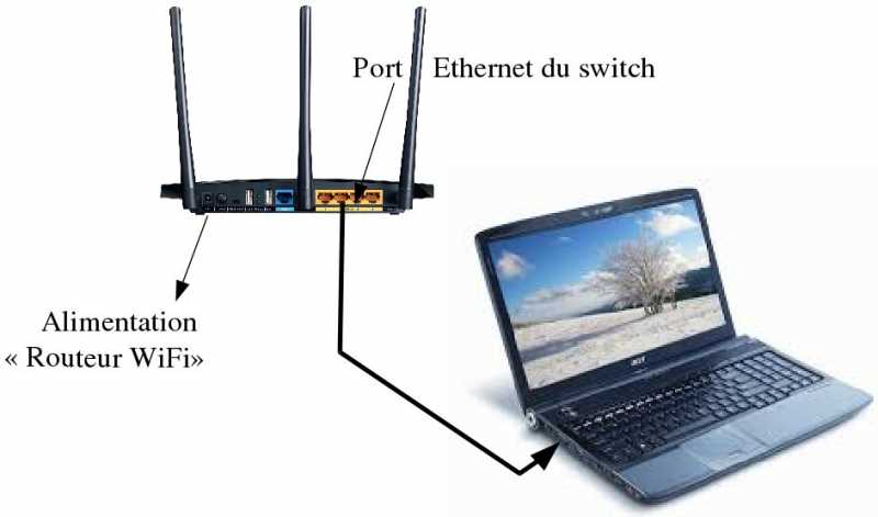 Connectez l'ordinateur à l'un des ports (1 à 4) Ethernet du routeur-switch.